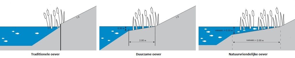 Vanwege de effectiviteit van duurzame oevers is met steun van Water Wonen en Natuur onlangs besloten bij vervanging van de oeverconstructies overal duurzame oevers aan te leggen met een minimale plasberm van 1 meter en waar mogelijk breder. Daarmee zijn duurzame oevers nu de norm in heel het beheergebied en dat is winst voor zowel de natuur als de waterkwaliteit.